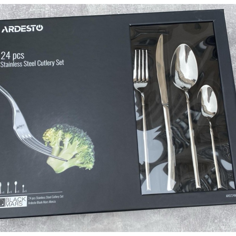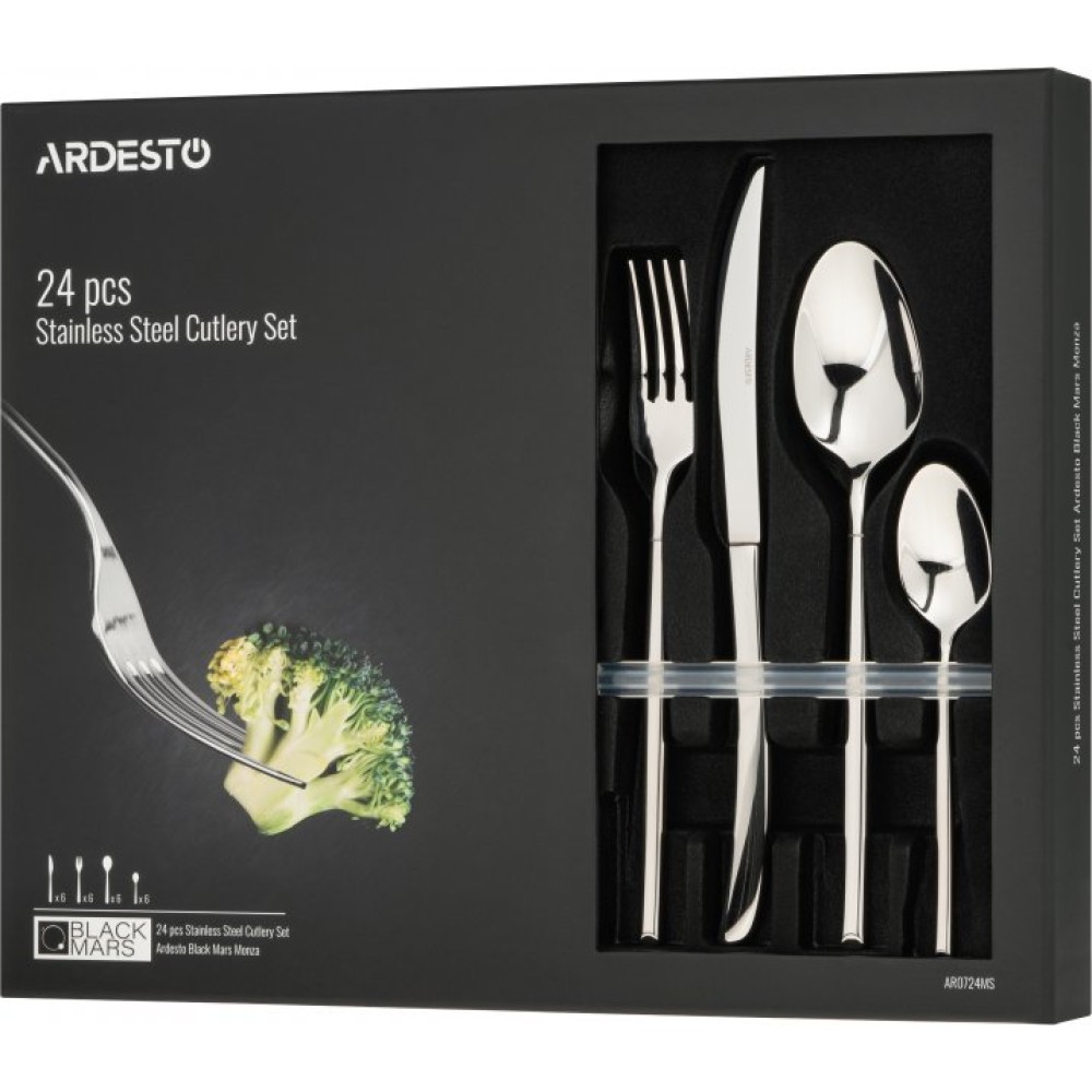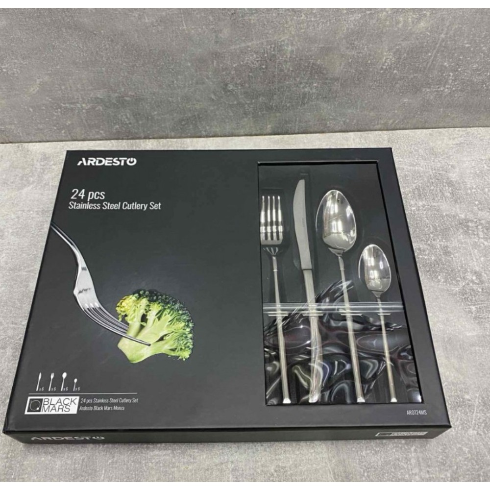 Набор столовых приборов Ardesto Black Mars Monza 24 предмета нержавеющая сталь (AR0724MS)