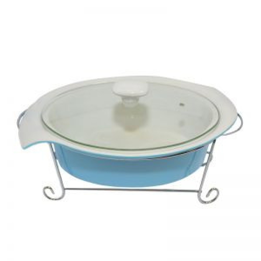 Мармит 1,4 л голубого цвета со стеклянной крышкой Krauff