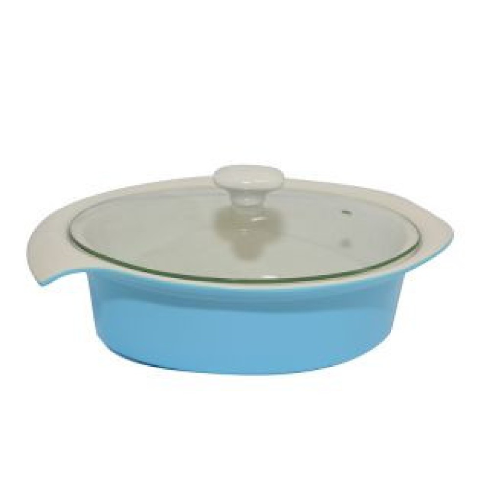 Кастрюля фарфоровая мармит 1,4 л голубого цвета со стеклянной крышкой Krauff.