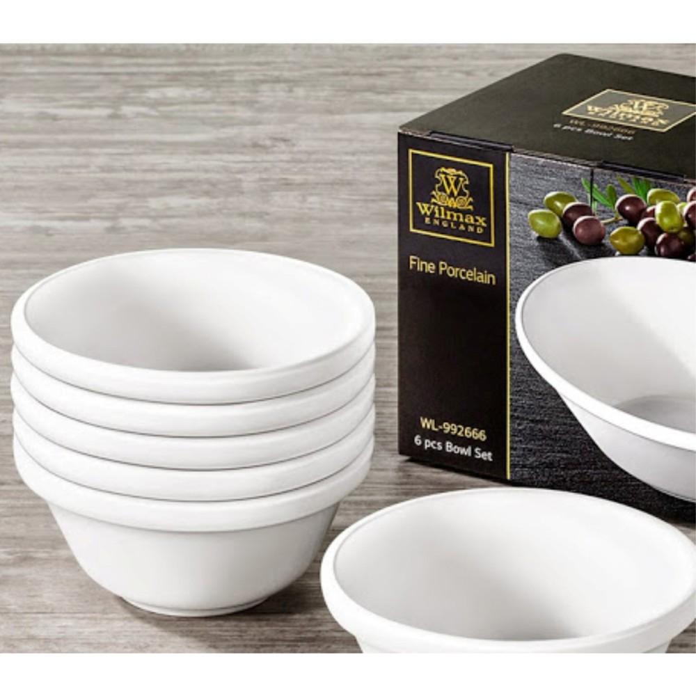 Wilmax представляет набор салатников диаметром 11,5 см. В комплект входят шесть круглых салатников, изготовленных из белого фарфора.
