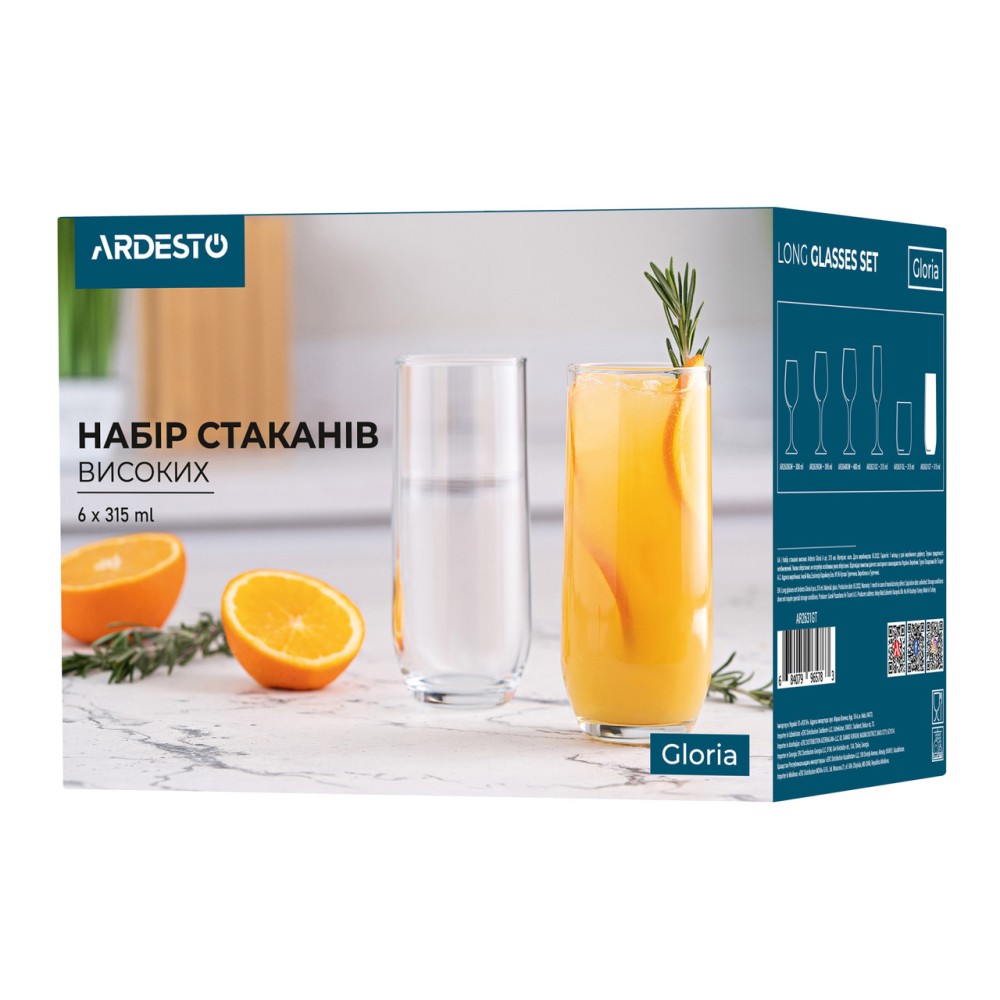 Набор стаканов высоких ARDESTO Gloria 315 мл, 6 шт, стекло AR2631GT