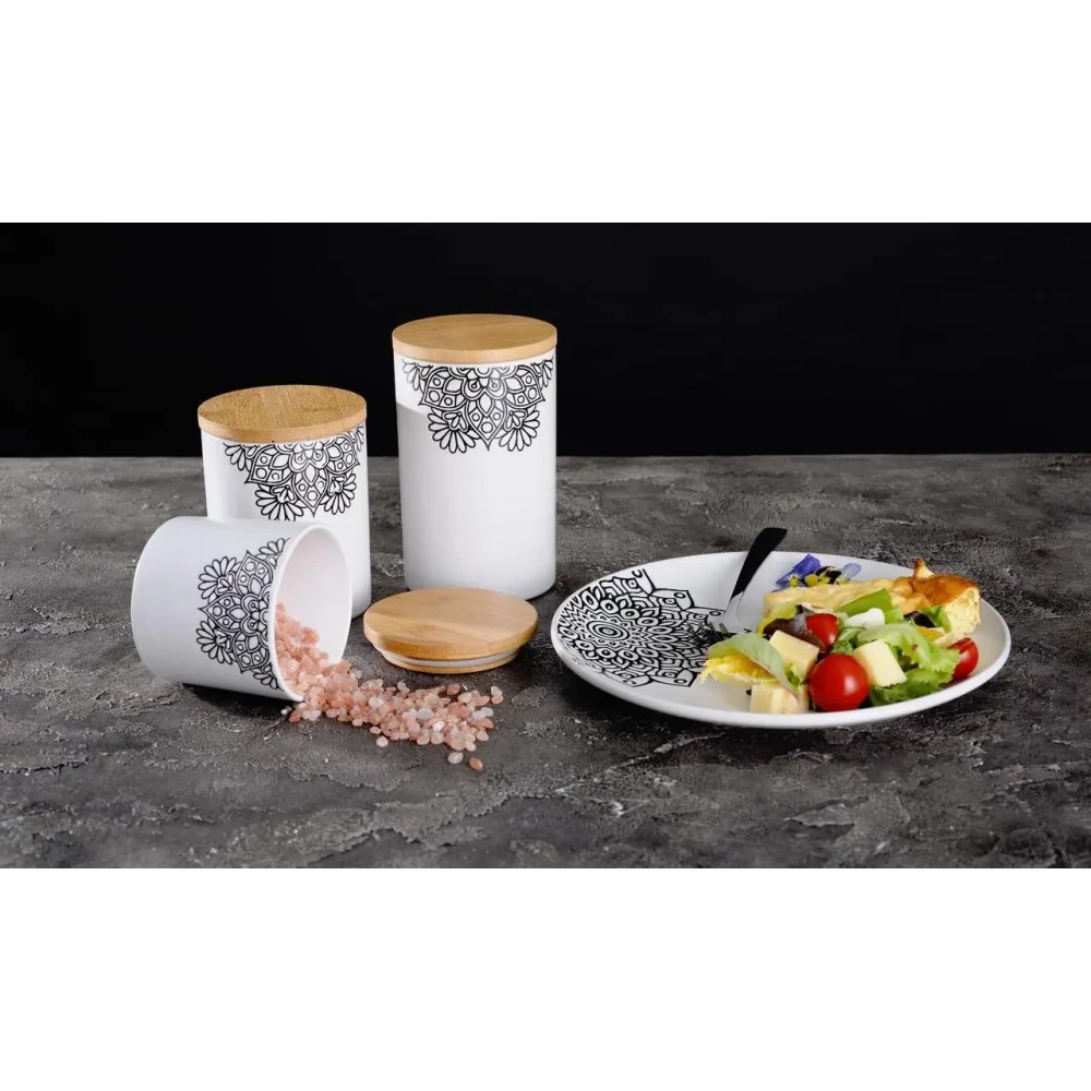 Емкости для сыпучих продуктов серии Kora – это удобная и функциональная посуда для любителей изысканности и стиля. Самобытный этнический орнамент в сочетании с натуральными материалами превращает обычную емкость для сыпучих продуктов в элегантное украшение интерьера с оригинальным дизайном.