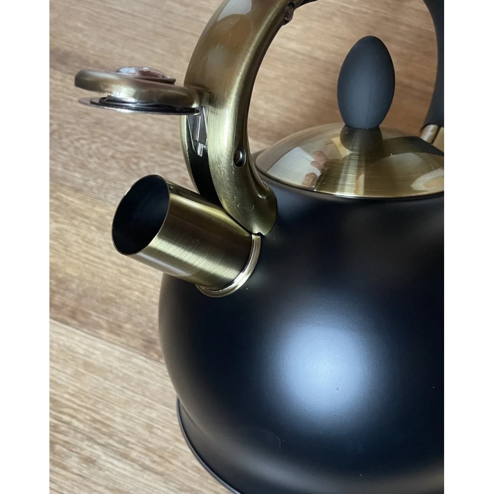 Бакелитовый свисток со стальной сердцевиной открывает отверстие носика одним нажатием кнопки. Кнопка встроена в не нагреваемую бакелитовую ручку. Крышка также изготовлена из бакелита, что обеспечивает безопасность и защищает от ожогов.