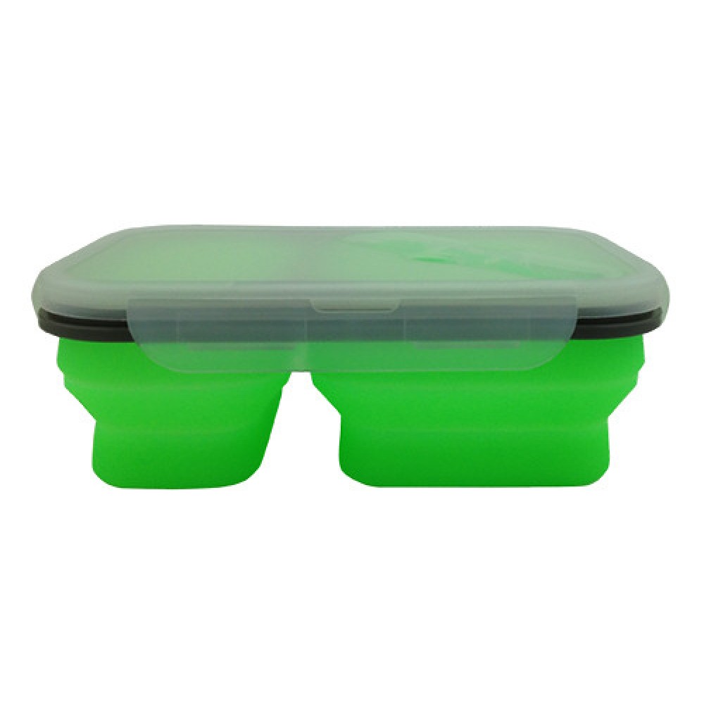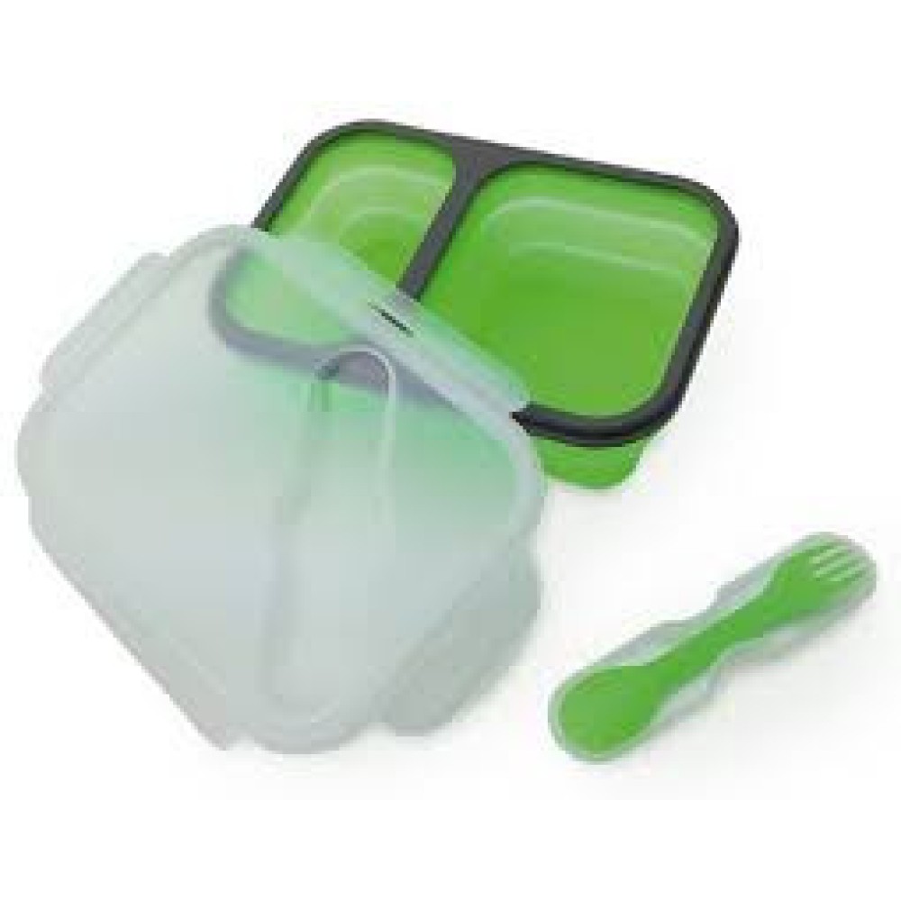 Силиконовый двухкамерный контейнер с ложкой и вилкой.