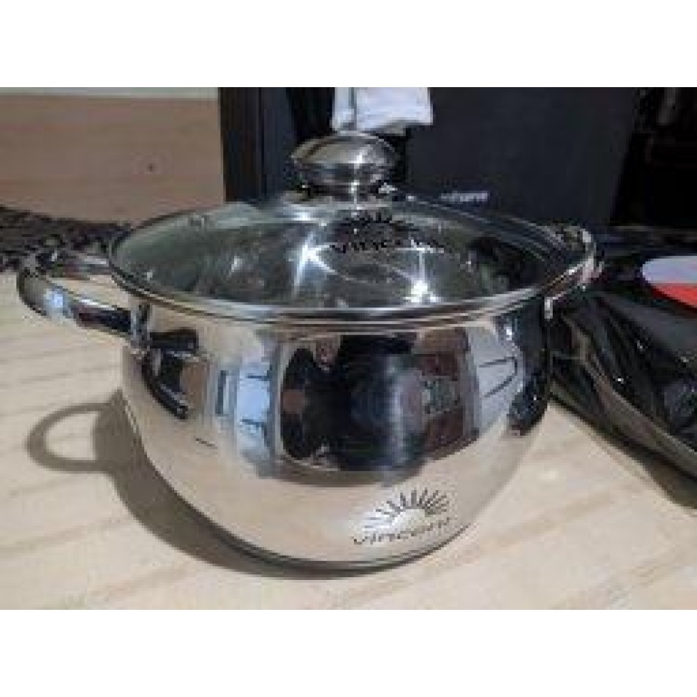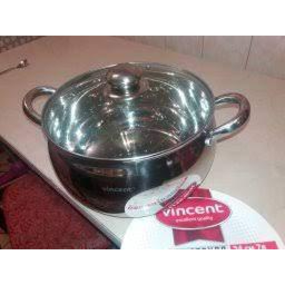 Кастрюля Vincent D 22 см, объемом 5,0 л, изготовлена из коррозионностойкой стали. Ручки также выполнены из коррозионностойкой стали с клепочным креплением.