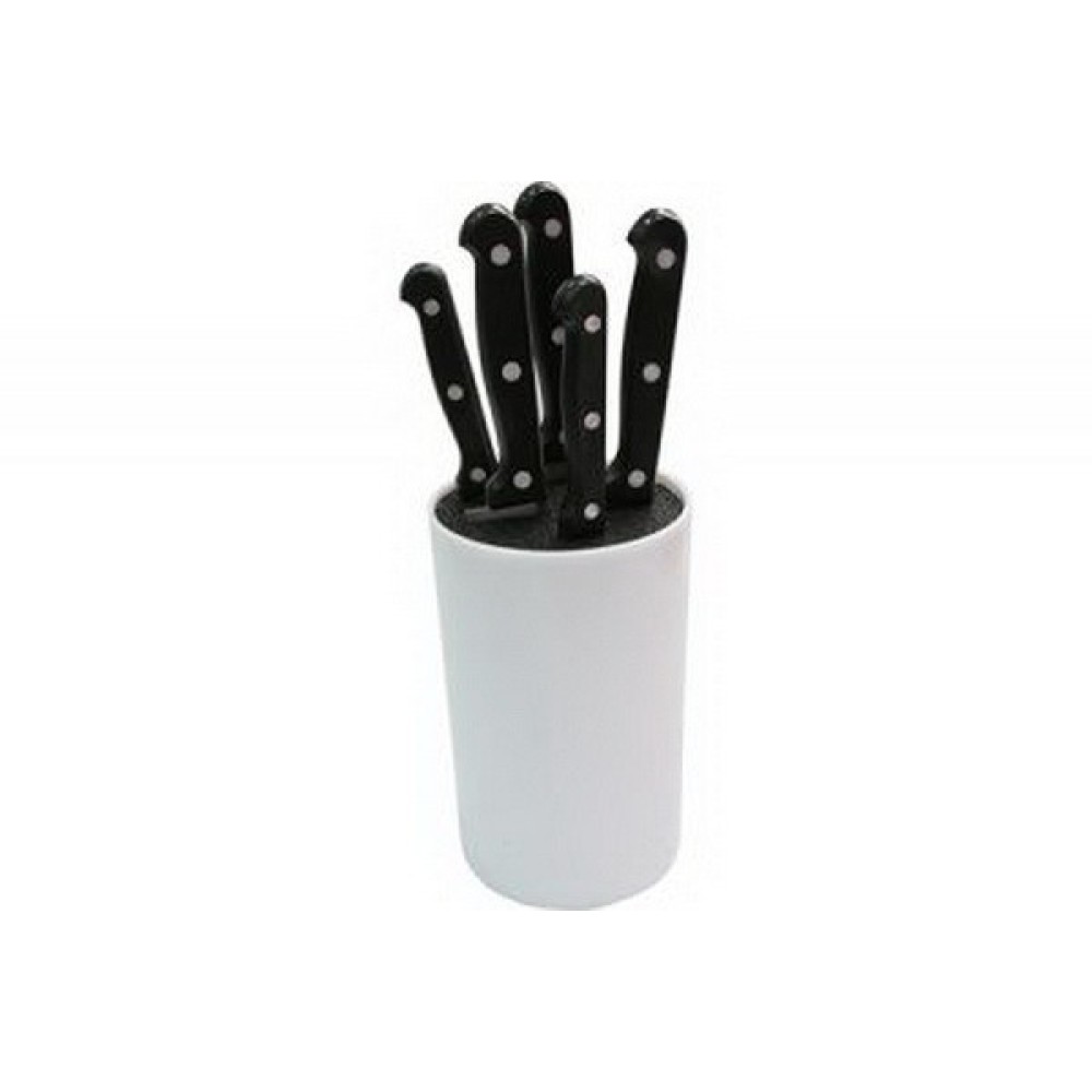 Удобная колода из пищевого пластика с универсальным дизайном позволяет расположить ножи в любом порядке. Она не займёт много места на кухонной поверхности.