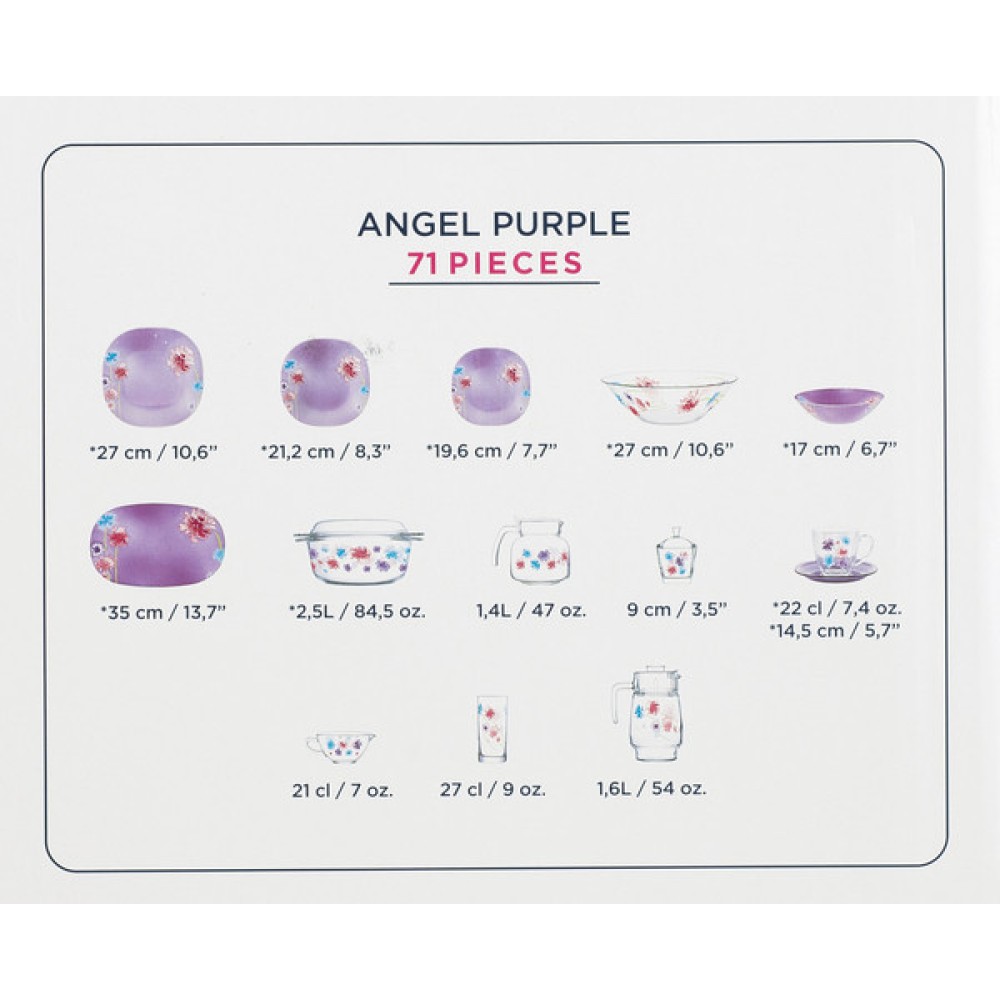 Сервиз столовый LUMINARC CARINA ANGEL PURPLE, 71 пр